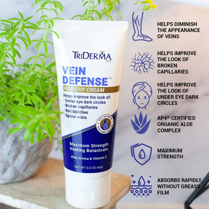 TriDerma Vein Defense Healthy Cream 2.2 Ounces Helps Improve the look of Spider Veins and Under Eye Dark Circles