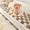 Triflice Fluffy Plaid Couch Cover for Pets Large Cream-Coloured Fuzzy Plaid Square Pet Mat Bed Couch Cover Protector Plaid Sofa Pad Bay Window Cushion Bedside Carpet (Brown, 27.6 * 70.9in)