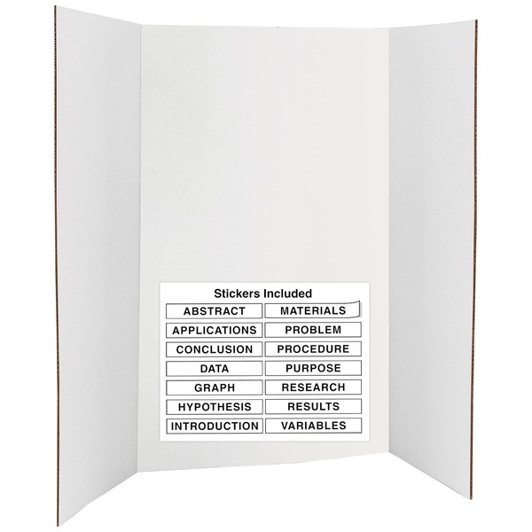 Trifold Poster Board 36" x 48" White Presentation Board - Self-Adhesive Science Subtitles Included - Science Fair Display Boards, for School, Fun Projects and Business Presentations - by Emraw