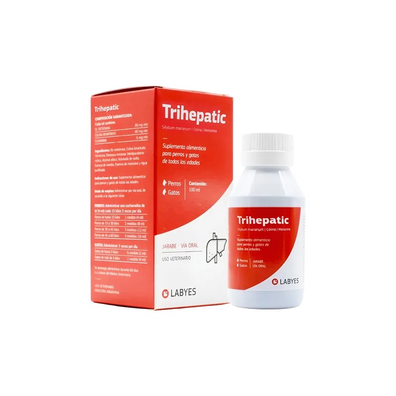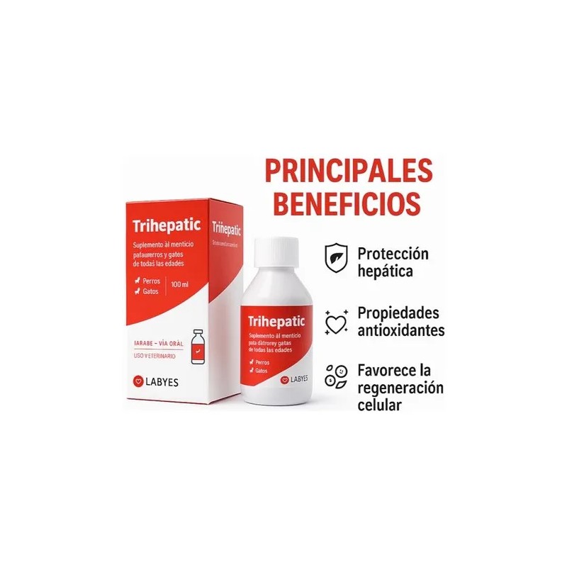 Descripción Limpia: Trihepat ahora es Trihepatic de LABYES, suplemento alimenticio para perros y gatos de todas las edades. De origen 100% natural. Sin contraindicaciones ni efectos adversos.