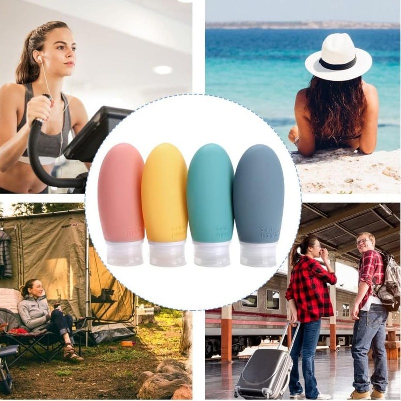Triko Set de 4 Botellas de Viaje de Silicona de 100 ml, Envases Rellenables y Exprimibles, Recipientes de Viaje a Prueba de Fugas para Champú, Acondicionador y Artículos de Tocador