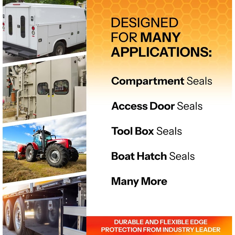 - MANY APPLICATIONS: You can use this co-extruded rubber trim seal for a variety of applications including RV slide out seals, boat hatch seals, automotive door seals, storage container seals, tool box seals, decorative trim seals, and so many more.