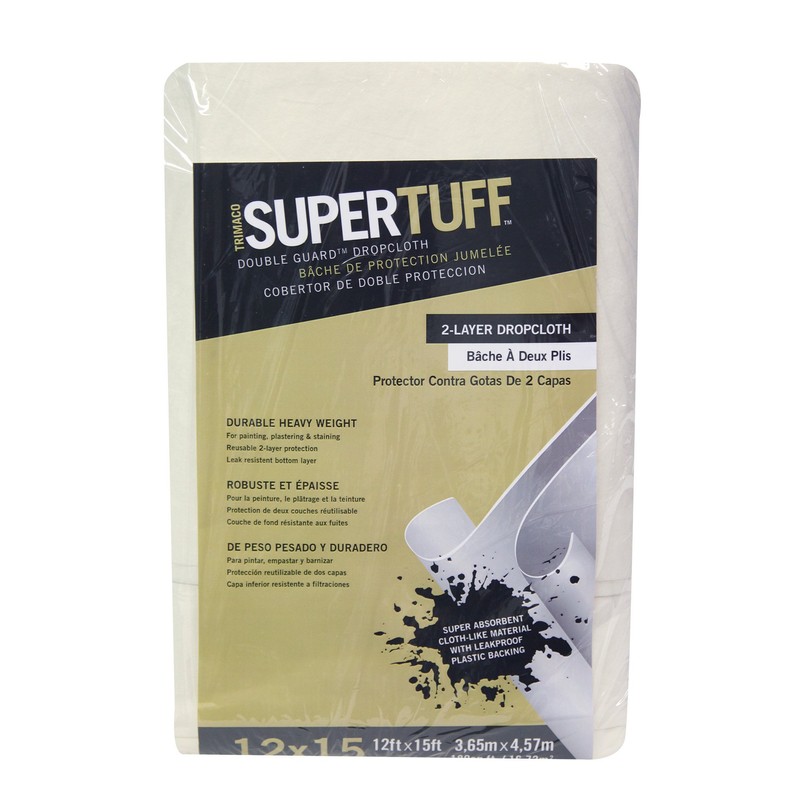 Trimaco 2703 SuperTuff Double Guard Two Layer Leak Resistant Dropcloth, 12 by 15-Feet