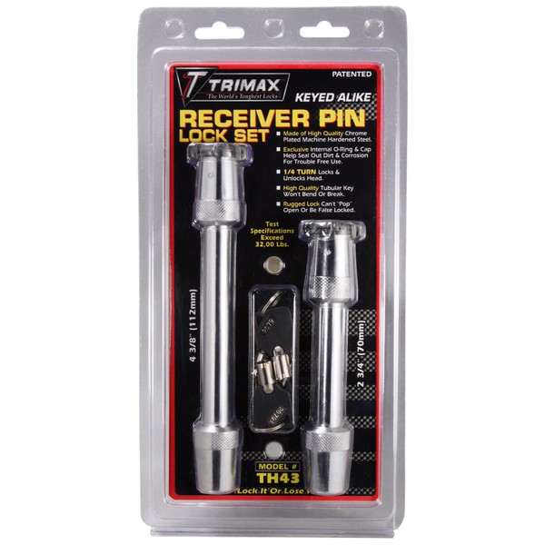 Trimax Premium 'Rapid Hitch' Adjustable Hitch Keyed Alike Lock Set (Th4 & T3) TH43, Clam Packaging