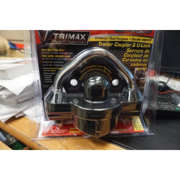 TRIMAX UMAX50D Deluxe Universal Dual Purpose Trailer Coupler Lock with Integrate