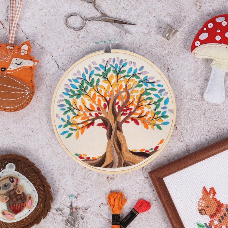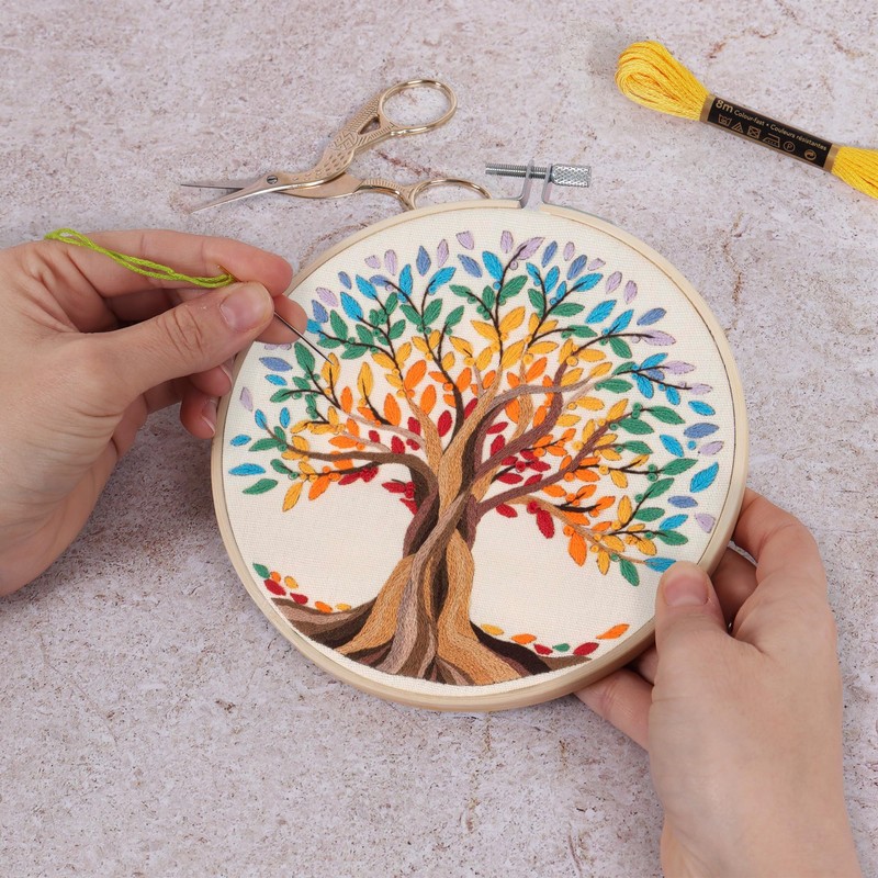 Trimits Embroidery Hoop Kits - 15cm 6” Beginner Starter Set, Includes Bamboo Hoop Threads Cloth Needle Backing & Instructions, Tree of Life