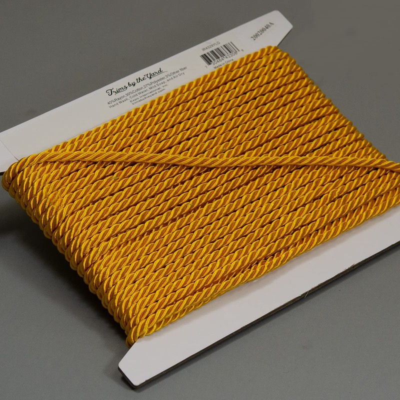 Trims by the Yard Charlotte 3/16" Twisted Cord Versatile Trim for DIY Crafts Picture Frames Home Decor and Fashion Items, 10-Yard Cut, Yellow Gold
