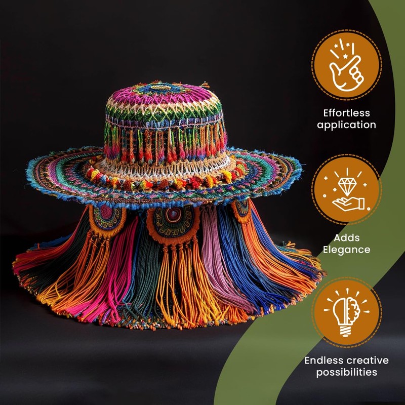 - Dekorativer Fransenbesatz: Verschönern Sie Ihre Projekte mit unseren Fransenborten. Es verleiht einen Hauch von dramatischem Flair und hilft Ihnen, einzigartige, auffällige Dekostücke zu schaffen, die sicher beeindrucken werden.