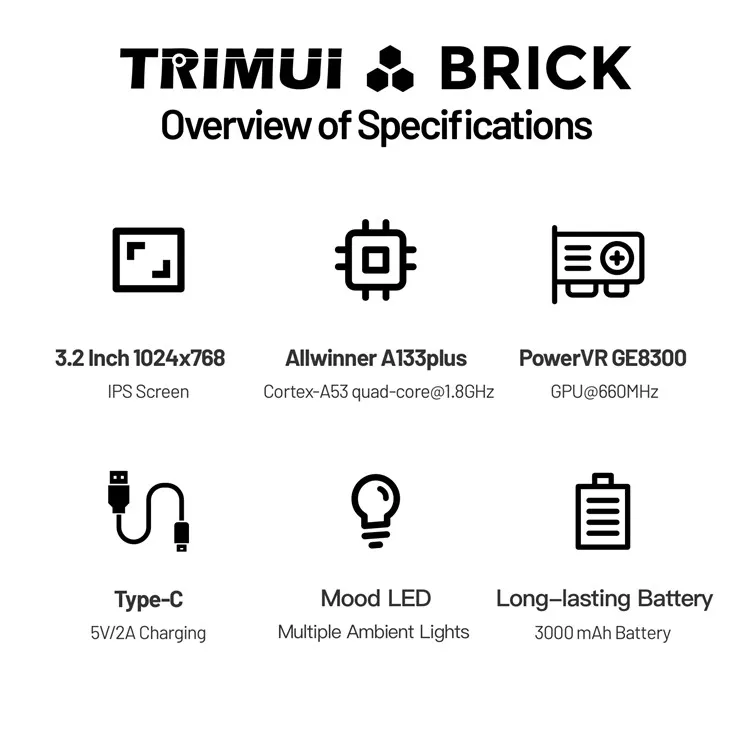 TRIMUI BRICK Handheld Game Console 3.2 Inch IPS Screen Mini Classic Portable Retro PSP PS1 Multiple Simulator Games Consolecolor: Black, capacity: 64G