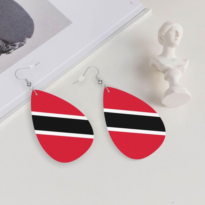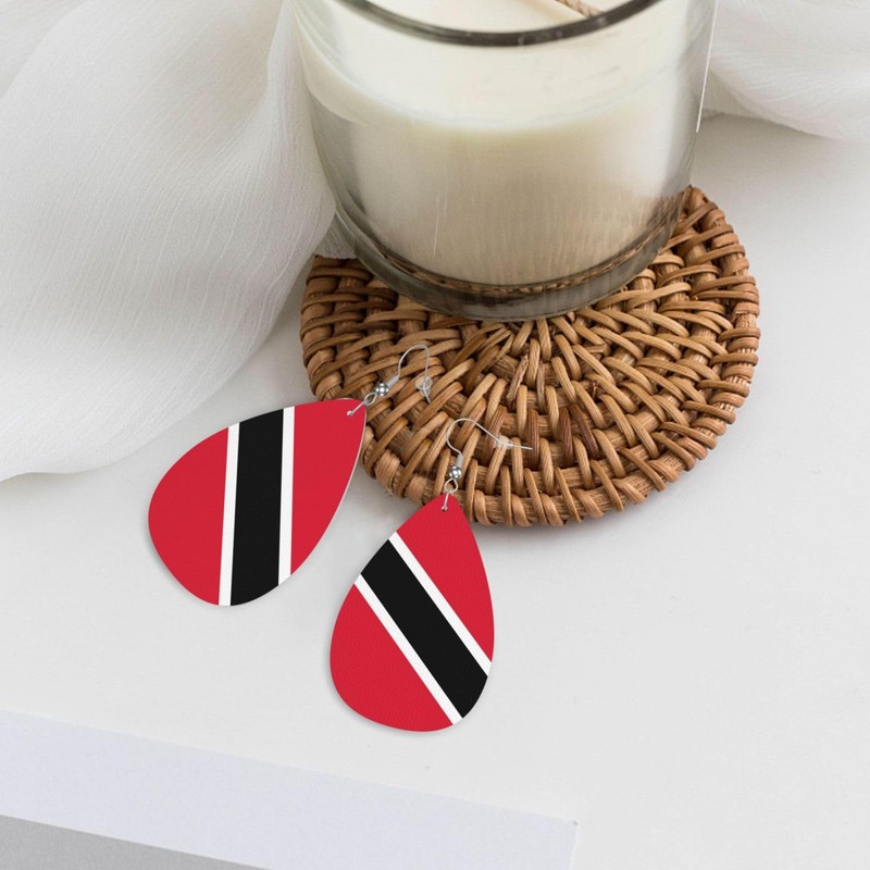 Trinidad And Tobago Flag Teardrop Earrings For Women Lightweight Leather Dangle Earrings Patriotic Jewelry Gifts