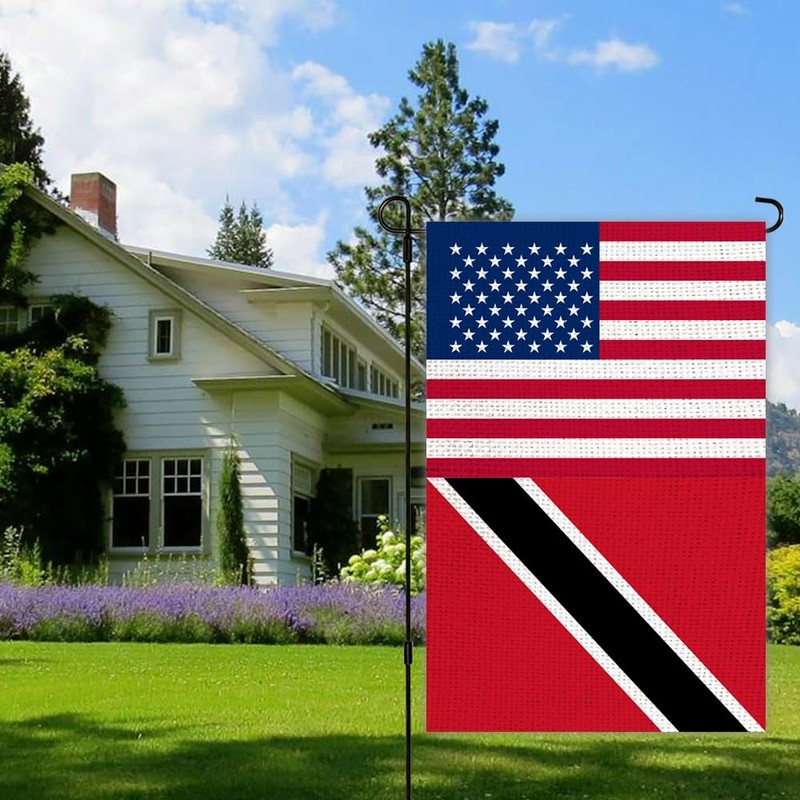 Trinidad and Tobago USA Friendship Garden Flag12x18 in Burlap Outdoor Banner for Patio Yard with Double Side