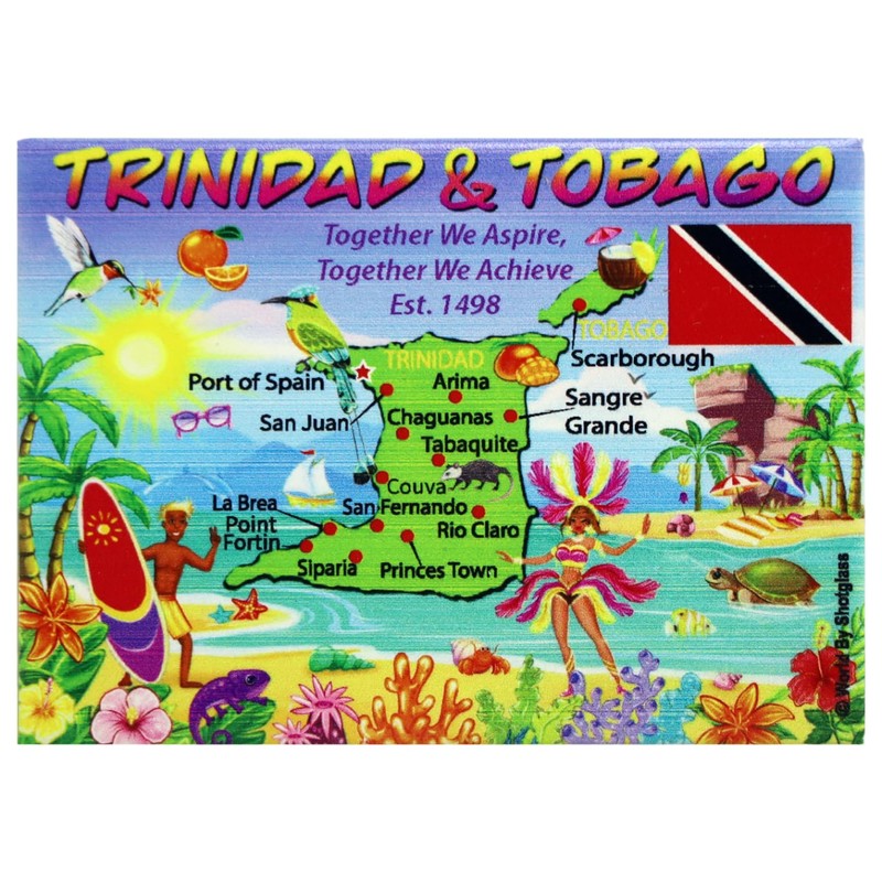 Trinidad & Tobago Graphic Map and Attractions Souvenir Fridge Magnet 2.5" X 3.5"
