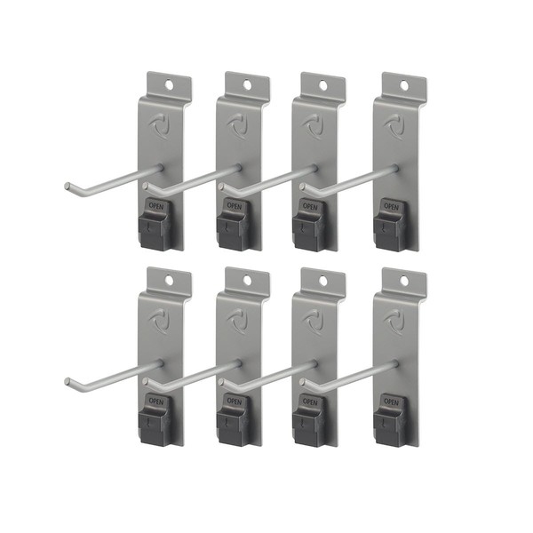 TRINITY Heavy Duty Slatwall Single Hooks with Spring-Lock, 4-Inches, Gray, 8-Pack