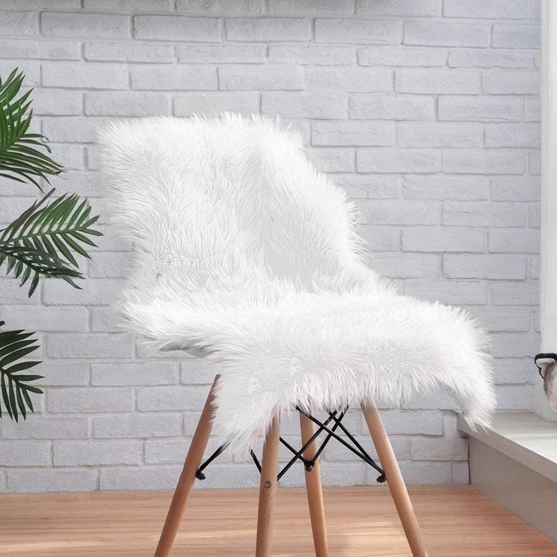 Trintion Faux Fur Rug Fluffy Imitation Sheepskin Carpet 40 x 60CM - Soft Furry Area Rugs for Living Room Bedroom Sofa Nursery Seat Pad White