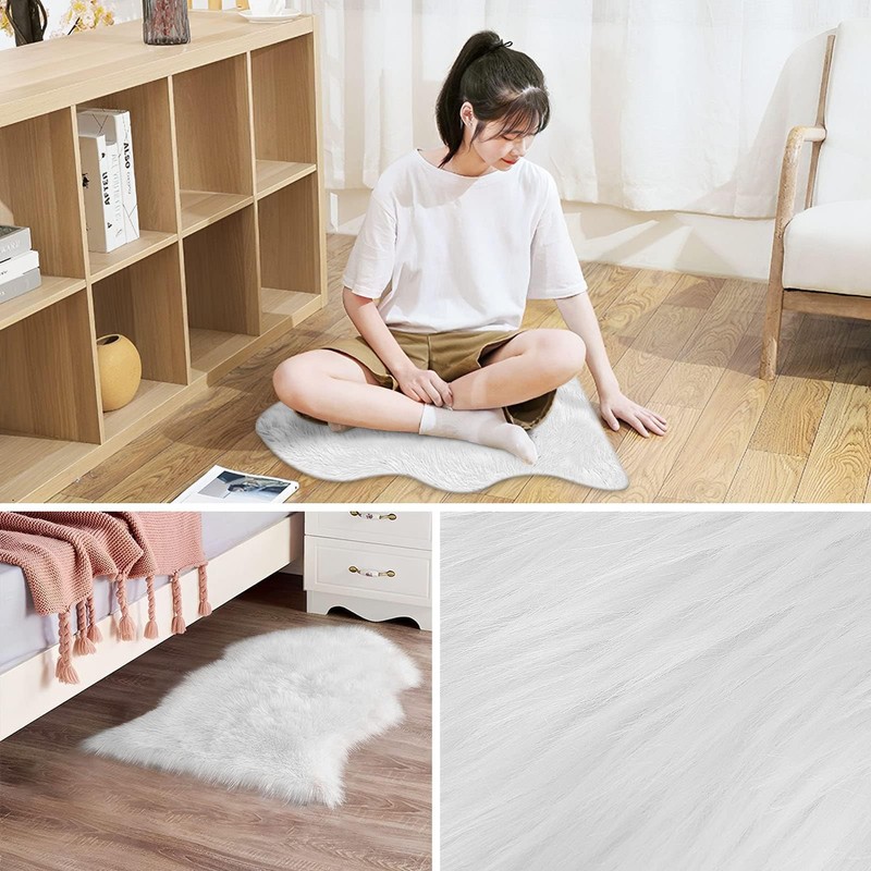 - [Irregular Design for Artistic Appeal]: Stand out from ordinary rugs with the irregular shape of our faux fur rug. This design offers a unique visual experience and artistic sense, adding a modern and warm feel to any room. A great decorative rug that breaks away from the regular square or round patterns.