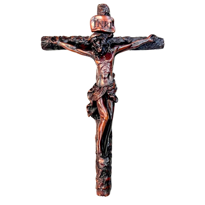 Durable materials: each crucifix is made of high-quality resin (resin) and coloured in wood colour. It is not only visually appealing, but also particularly resistant to wear. Masterful production: The original crucifix is an excellent work of art made of very precise craftsmanship, where every line and curve of the design is worked out with the utmost care and attention to detail and quality. [Rich symbolics] With profound Christian symbolism, represented by the blessing words and inscriptions, this crucifix serves as a daily reminder of Jesus' faith and teachings. User-friendly installation: the practical eyelet ring holder makes it easy to hang the crucifix on the wall, which allows quick and easy installation without additional tools. Gift with meaning: This exquisitely designed crucifix is not only a religious symbol, but also an expressive gift for spiritual occasions or as a
