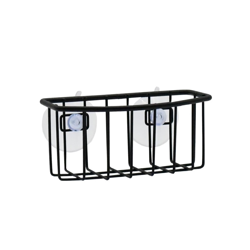TRIO HOME Sink Sponge Organizer Caddy, Strong Transparent Suction Cups, Rust Resistant, Quick Drying (Black)