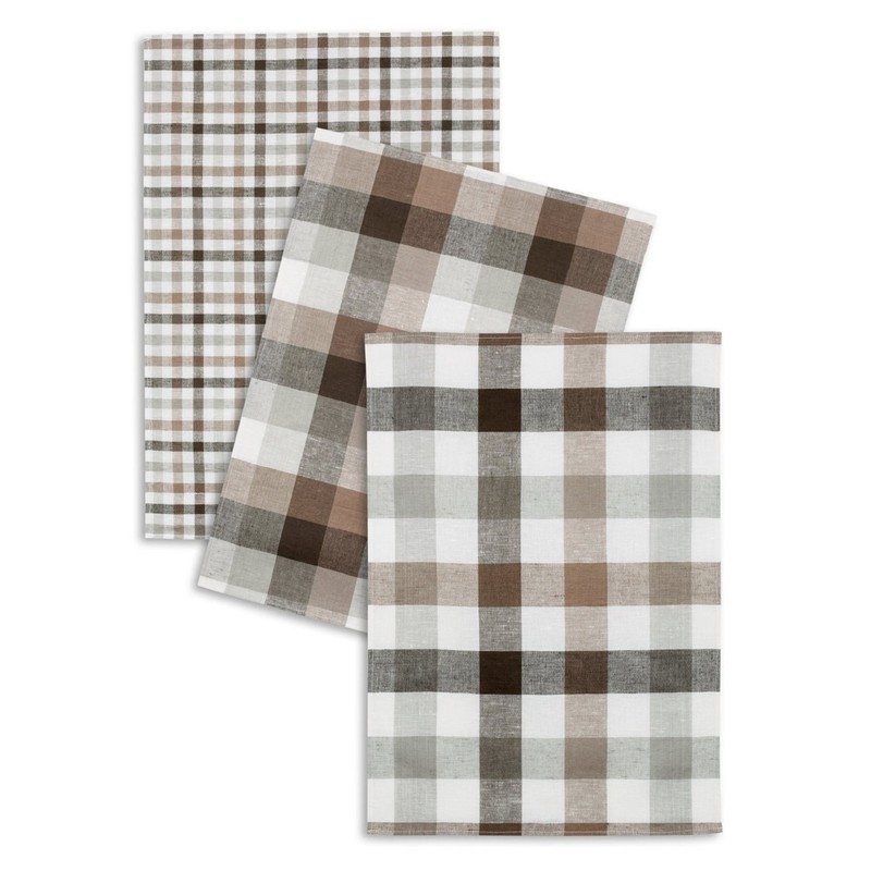 Triolino 3-er Pack Jacquard Geschirrtücher Küchentücher Halbleinen Karo sortiert