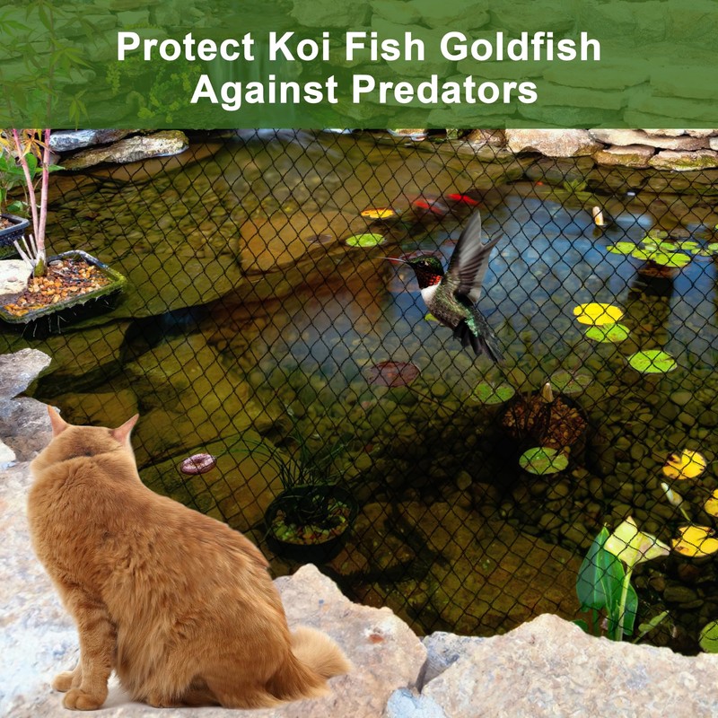 - Provide All-around Protection for Ponds Koi Fish: Are you annoying with the falling leaves and other debris from your pond or pool? Are you worry about the pond koi, fish, goldfish arrested by blue heron birds, cats and other predators? From now on, you don't have to worry it any more. Our pond netting for koi ponds will provide full protection for your koi, fish, goldfish in all seasons and keeping pond always clean and beautiful all year round