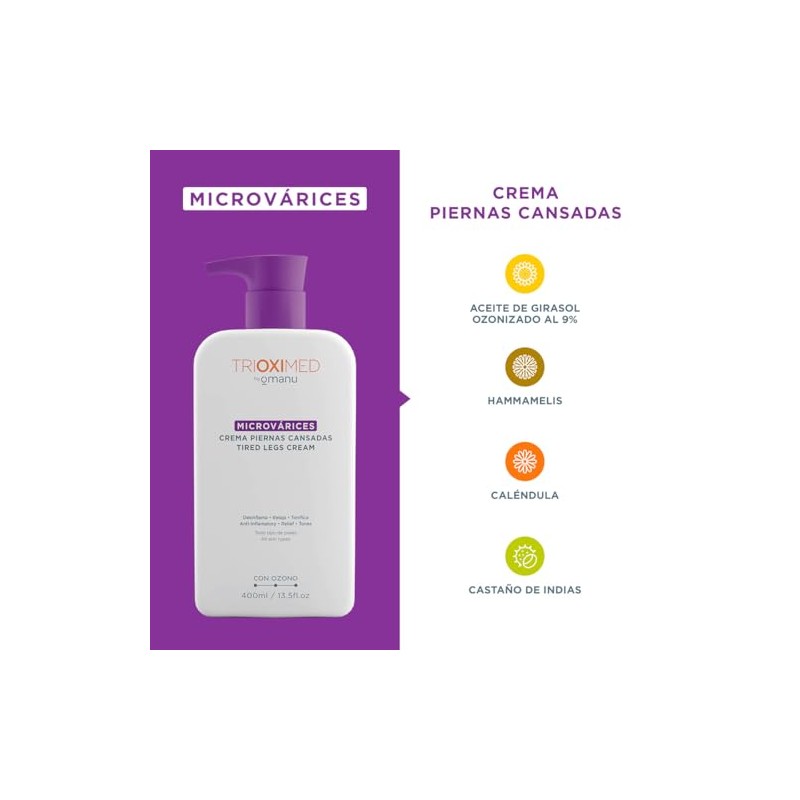 🌟 ⭐ TRIOXIMED | Crema Para Piernas con Microvárices, Cansadas y con Dolor 400 Ml | Ideal para deportistas, mujeres embarazadas, personas que trabajan de pie | Aceite Girasol Ozonizado | Hamamelis | Caléndula | Arañitas Vasculares ⭐ 🌟