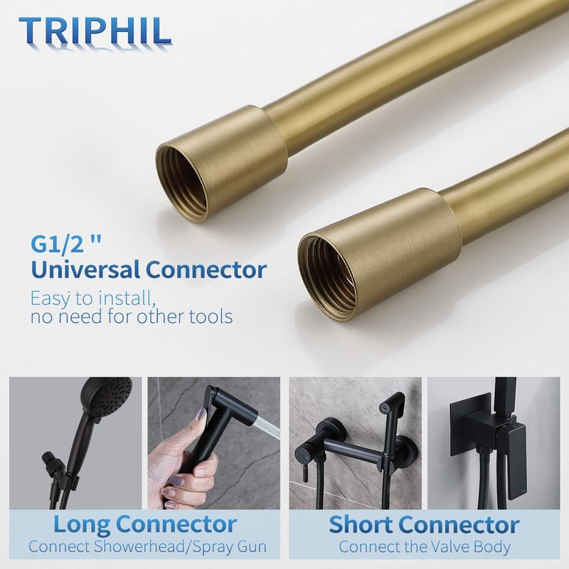 - Quality Silicone Shower Hose: This 59-inch (4.9-foot) shower hose is highly flexible and features a brushed gold finish for a bright, elegant look.It resists daily corrosion, scratches, and discoloration, ensuring durability and long-lasting appeal