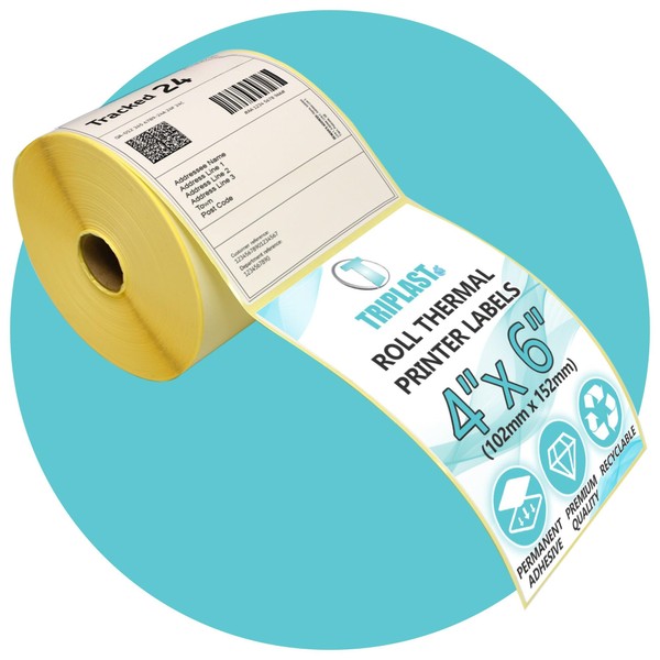 Triplast 250 x White Roll Thermal Printer Labels (4x6 inch / 102x152mm) - for Printing Courier & Shipping Labels - Compatible with All Thermal Printers