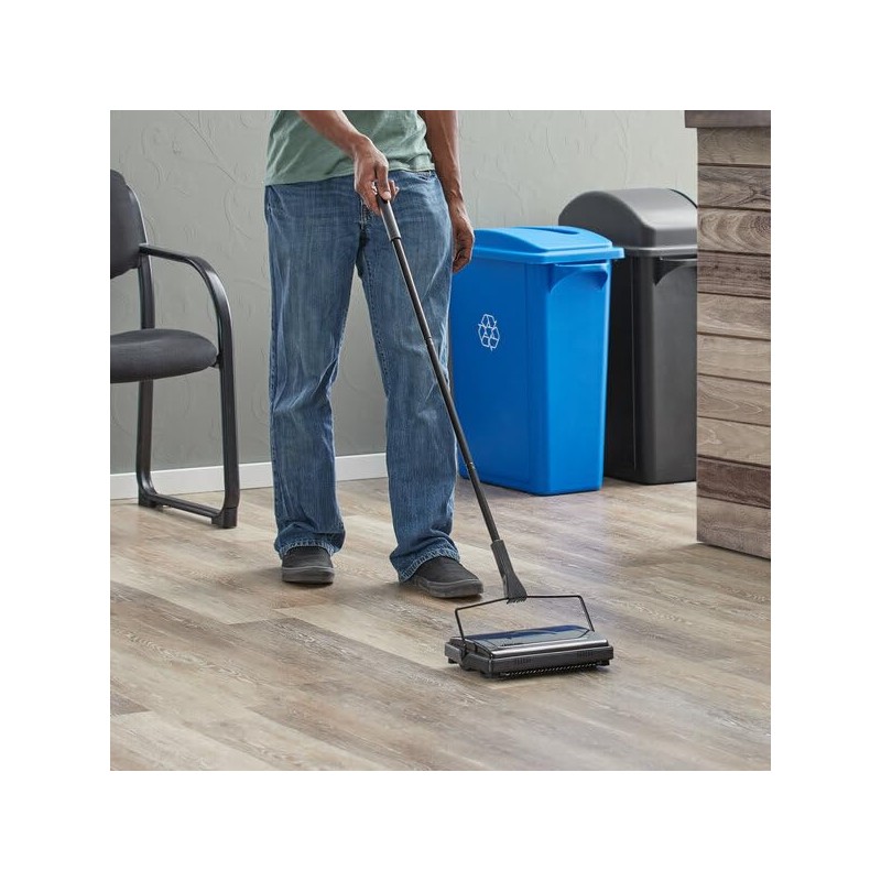 Triple Brush Floor Sweeper, 11 Inch Cleaning Path, Manual Operation, Indoor Use, Dual Bin Design