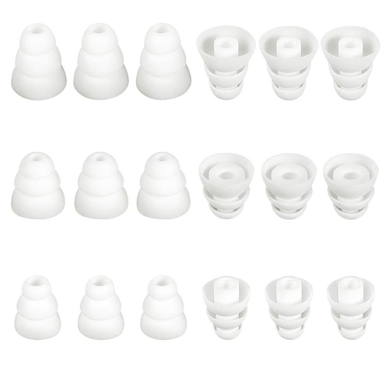Triple Flange Eartips Soft Silicone Replacement Earbud Tips Fit for Inner Hole from 4mm - 5.1mm Earphones 9 Pairs S/M/L White