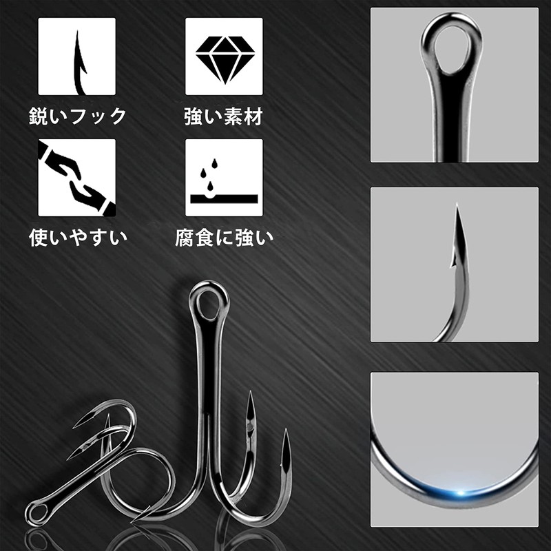 - Strong enough for real fishing: The triple hook uses high carbon steel for high cost performance, but it is resistant to rust, thick wire diameter (about 0.04 inch (1 mm) on average) and is strong and hard to bend. Not only can you use fresh water, but also salt water. Can be used for a wide range of purposes, including mackerel, bath, sea bass, and blue