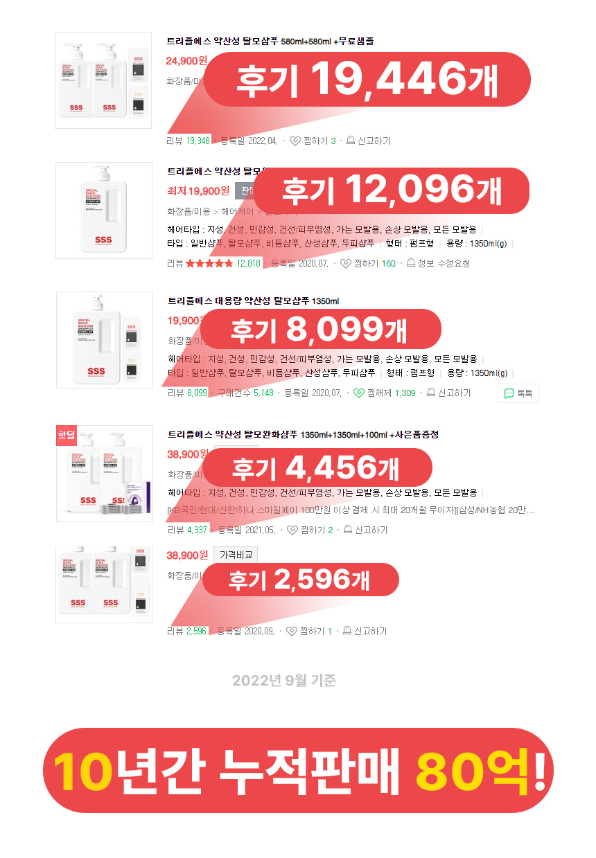 Triple S SSS Mildly Acidic Hair Loss Shampoo 1350ml 1+1 Set/Free Sample (20 5ml) / 트리플에스 SSS 약산성 탈모샴푸 1350ml 1+1세트/무료샘플(5ml 20개)