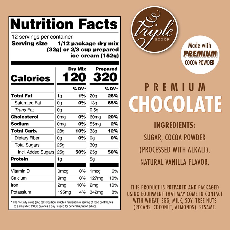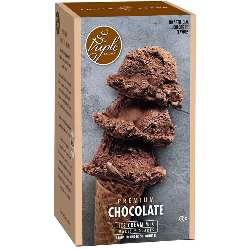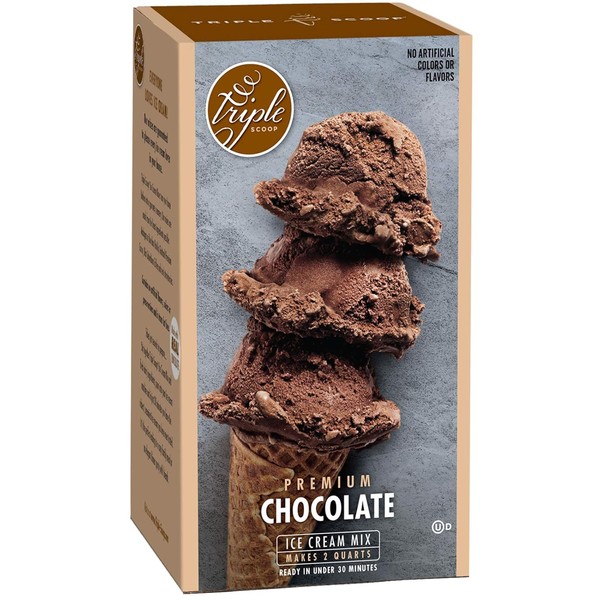 Triple Scoop - Premium Chocolate Ice Cream Mix For Ice Cream Maker. Simple, Easy, Delicious. From Gourmet Mix To Maker in 5 Minutes, Makes 2 Creamy Quarts. Made in USA. (1 Pack, Chocolate)