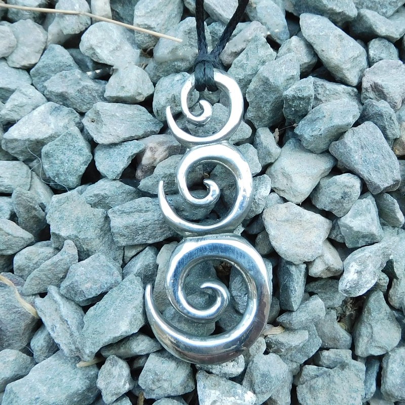 Triple Spiral Pendant, Represents New Beginnings and Harmonious Growth, Surf Jewellery Handmade in Fine Pewter by William Sturt