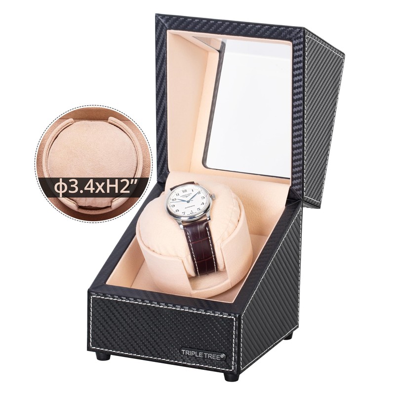 TRIPLE TREE Single Watch Winder for Automatic Watches, with Super Quiet Japanese Motor, 4 Rotation Mode Setting, Flexible Plush Pillow, Fit Lady and Man Watches, Carbon Fibre