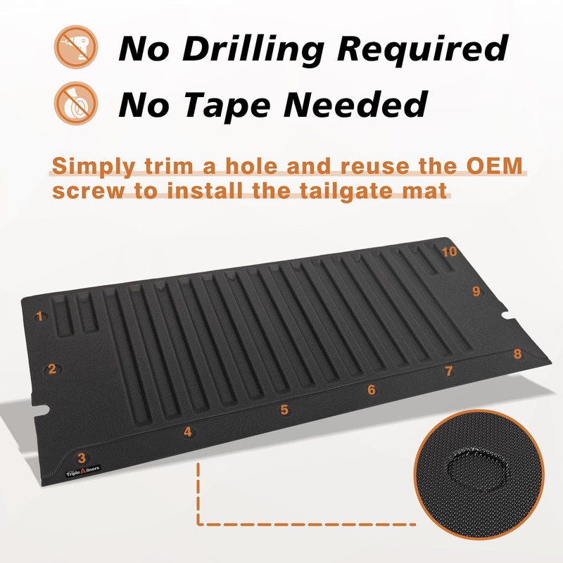 - Easy to Install: 1.Simply place the bed liner in position. 2.Place the tailgate liner in position, remove oem screws accordingly, simply trim the holes on the liner and reuse your OEM screws to secure the tailgate liner in place. [Our product is folded in a box. Please lay it flat under the sunlight for a while or simply rinse it with hot water to get the wrinkle out.]