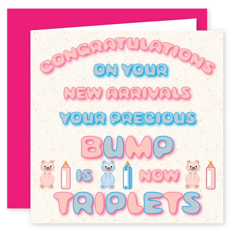 Triplets - Congratulations On Birth Of Your Babies Card - 2 Baby Girls & 1 Baby Boy - Precious Bump Design