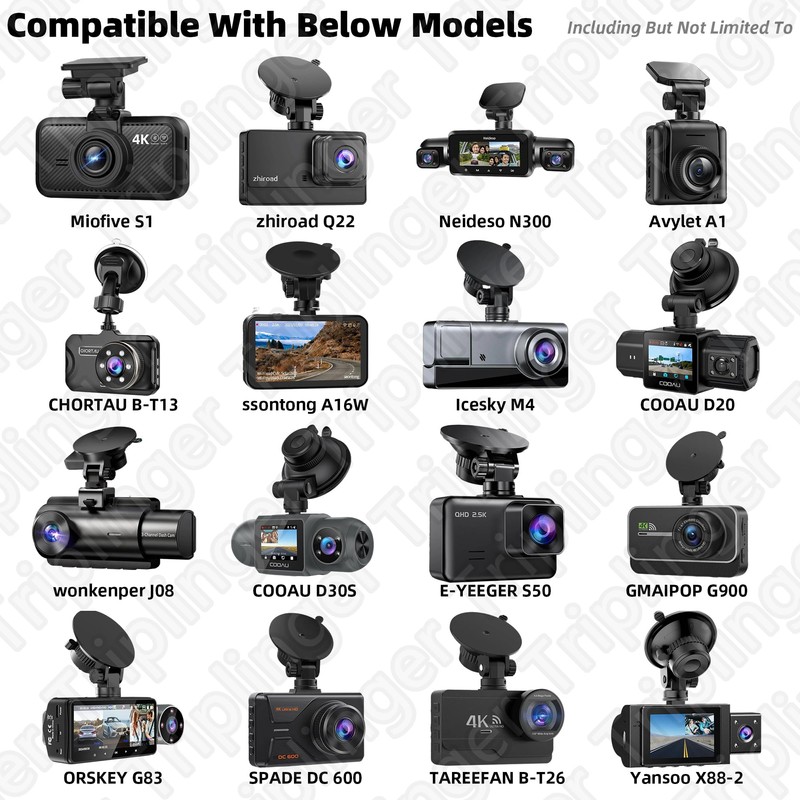 Triplinger Dash Cam Suction Cup Mount for Rexing Rove SASINON SUVCON Miden BAEASU Azacvb lensuge DoHonest iZEEKER Galphi BOOGIIO Otovoda Miofive Lensuge zhiroad Neideso Avylet Camera Windshield Mount