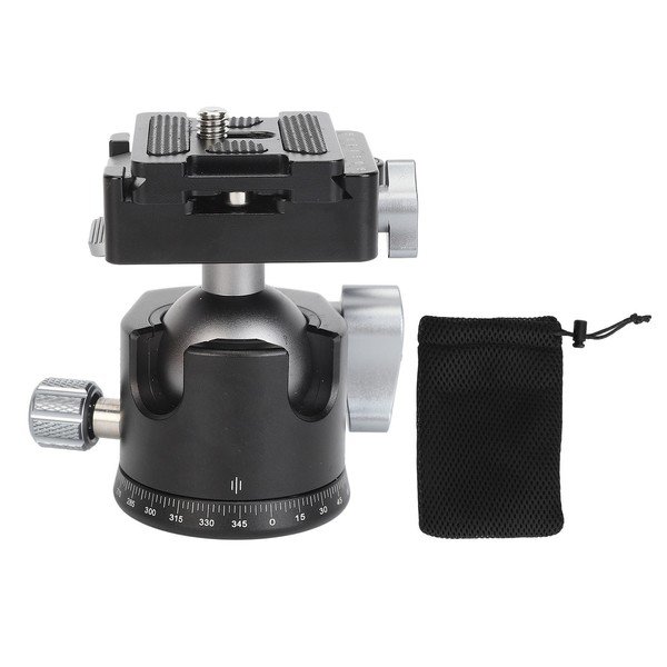 1、VERSATILE APPLICATIONS: The 1/4inch screws on the plate and the 3/8inch screw holes on the bottom are suitable for most camera equipment. The ball head's main knob cannot be unscrewed, so press down to remove the plate and prevent accidental drops. 2、LOW CENTRE OF GRAVITY DESIGN:The centre of gravity is 10mm lower than normal ball heads, making it more compact and stable. Anti drop design protects the device at all times. 3、PRECISE 360° ADJUSTMENT: Dual U slot design allows for easy switching to vertical shooting mode. Used for tracking progressive panning, 360° horizontal scale is convenient for photographers to take multiple panoramic photos. 30mm precise scale bubble level meets the needs of precise photography. 4、COMPATIBLE: The ball diameter is 32mm. Ball heads can be used with tripods, monopods, camera sliders for mounting cameras, DV, mobile phones, binoculars. The quick release plate is compatible with devices such as for Acra. 5、MATERIAL: Featuring CNC machining technology and an aluminium alloy body, it can hold up to 8kg. The height is only 73mm. Compact size and easy to carry.