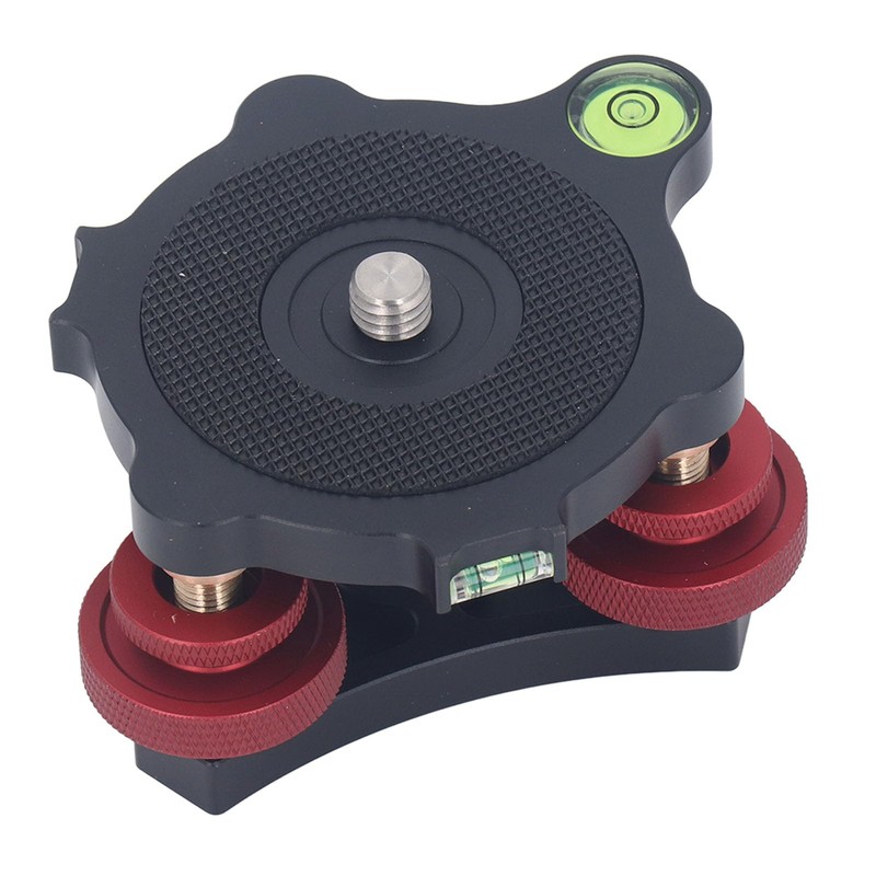Tripod Head Leveling Base Camera Leveler, 3/8”Thread,+ / -5° Angle Adjustment, 3 Bubble Level Triple Wheel Leveler for Macro Panoramic Head, Aluminum Alloy