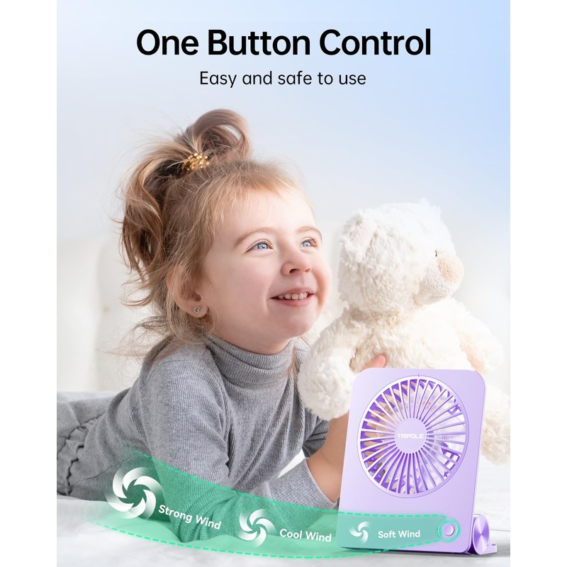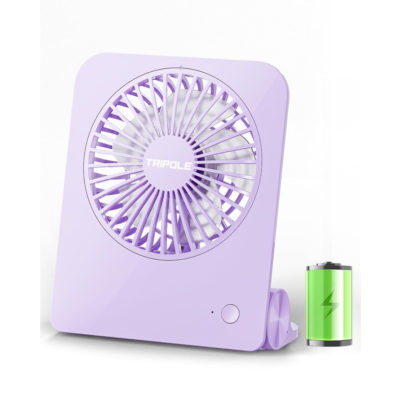 TriPole Desk Fan Small Portable Fan 2000 mAh Rechargeable Battery Fan Ultra Quiet 4.5 Inch Mini Travel Fan with 180° Tilt Folding and 3 Speeds Adjustable for Home Office Desktop Purple