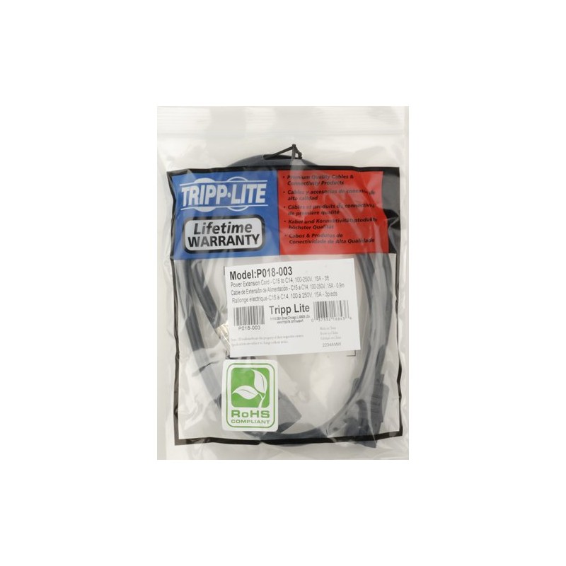 Tripp Lite 6ft Heavy Duty Computer Power Extension Cord 15A, 14 AWG, C14 to C15, Black 6'(P018-006)