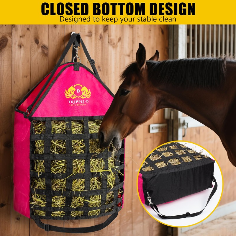 Tripple-D Horse Supplies top Loading Slow Feeder hay Bag, Equipment for Horses & Goats, Durable Strong Material and Nylon Feed net, Holds hay Bales securely, Reduces hay Waste, Nice feeders Storage
