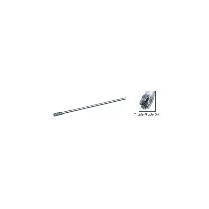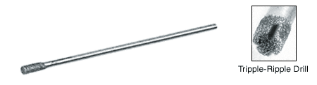 CRL Plated Diamond Flat-Tip Drills are to be used in hand-held Dremel®, Foredom or small precision drill presses. Diamond is plated on flexible music wire. Tripple-Ripple® Drills have twice the life and cutting rate of our Flat-Tip Drills. The Tripple-Ripple® Diamond Drill has three flutes to allow cuttings to flush away, and decrease frontal contact and drag. As the edges wear, fresh diamond in the flutes maintain the cutting action.