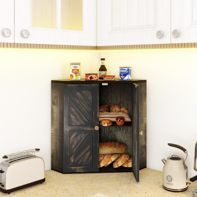 Trironsun Corner Bread Box for Kitchen Counter Double Layer Bamboo Bread Storage Container Large Capacity Bread Storage Bin Farmhouse Breadbox Organizer (Antique Black)