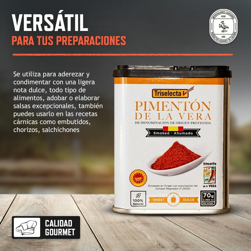 - Ingrediente único y artesanal, ideal para los mejores chefs y amantes de la cocina, nuestro pimentón es elaborado de forma natural en La Vera, España.