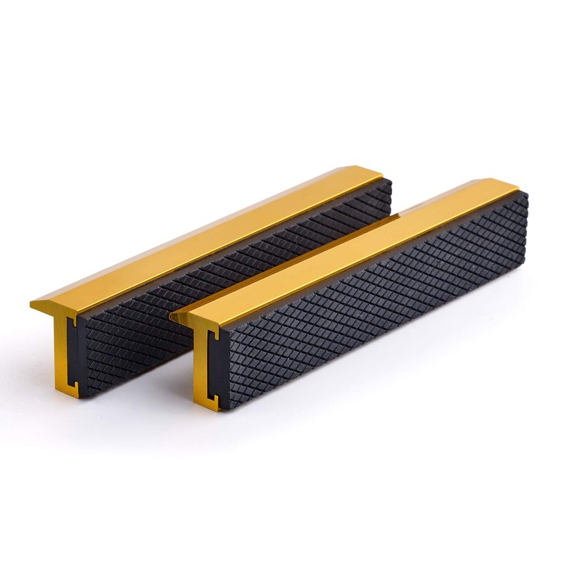 - 【Design】Aluminum soft jaws with a specially designed V-shaped surface and ledge can hold and protect round or hex parts and support flat parts while clamping, providing convenience in operation.