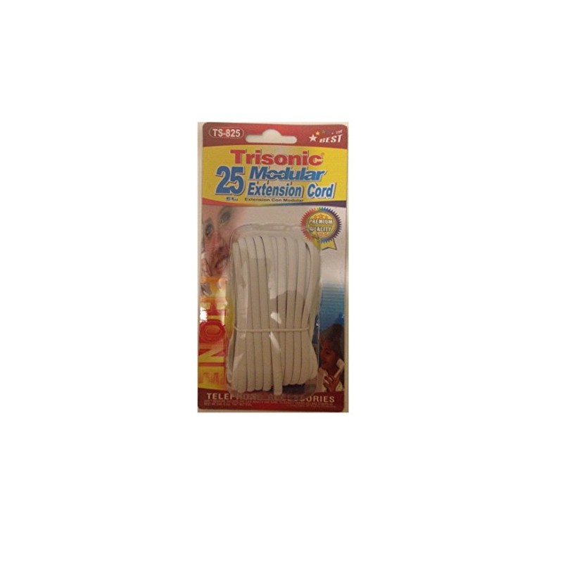 Trisonic Telephone Phone Extension Cord Cable Line Wire, 25', White