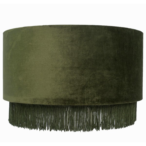 Tristan Home Premium Velvet Drum Lamp Shade with Fringe (Olive Green) 35cm Width