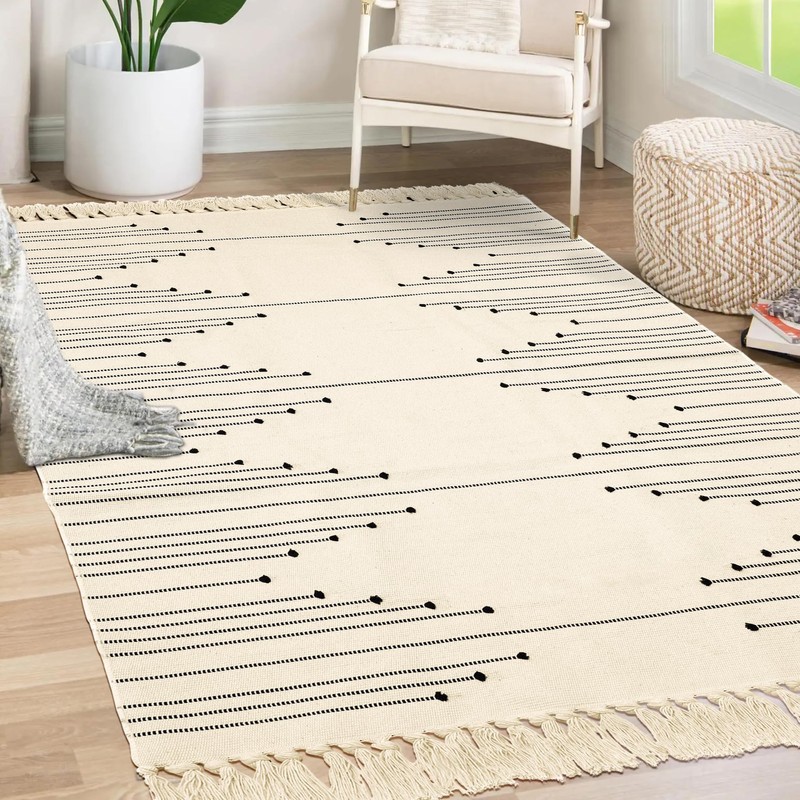 Tritard - Alfombra de algodón lavable con borlas, color beige 2, 4 x 6 pulgadas