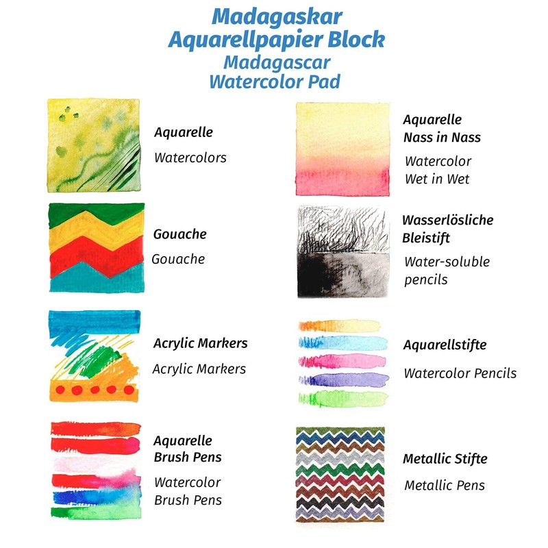 - Optimal colour reproduction: watercolour paper DIN A5 with excellent watercolour paper effect. This A5 watercolour range belongs to the Tritart series: Madagascar watercolour paper pad, 55 sheets