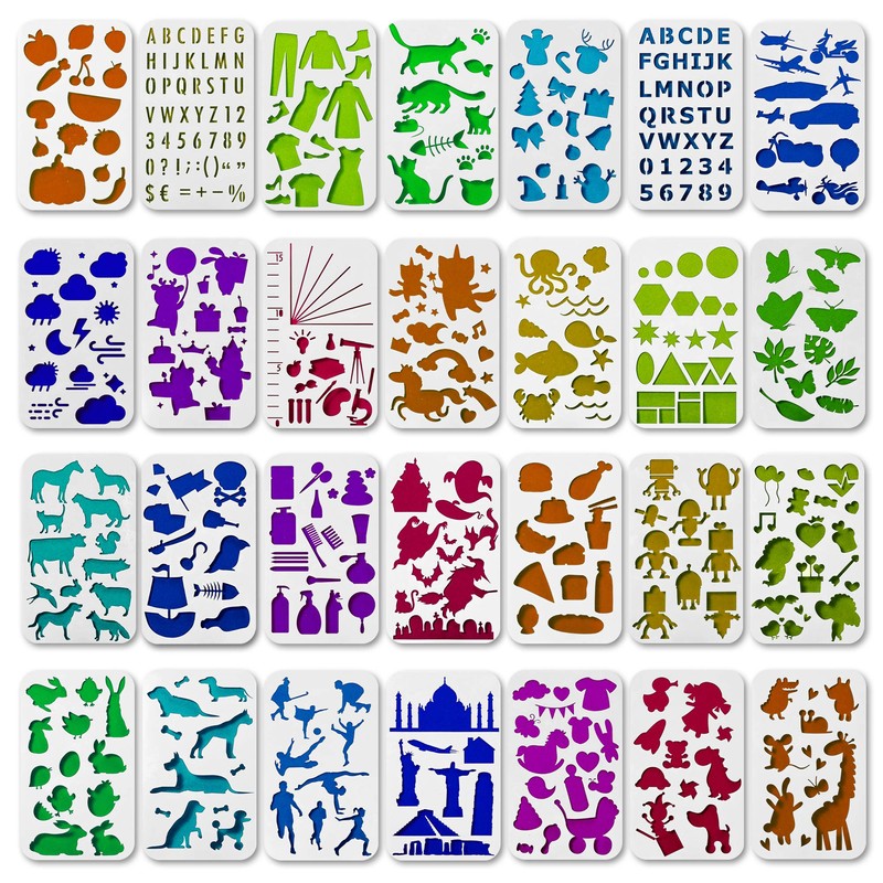✔28 plastic stencils.